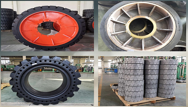 钢圈压配式实心胎:抓地性强,刹车性能优良,负载行驶稳定性极强,滚动阻力极小,能耗极低,适用于拖车及其他传动,行走机械。