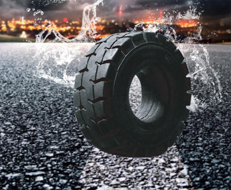 充气形态式实心胎:负载大,地面接触面积大、抓地性强、滚动阻力小、能耗低、为国外叉车配套专用。